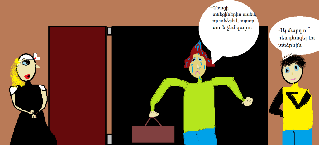— Գնացի՝ տնեցիներին ասեմ, որ անձրևի պատճառով գիշերը ձեր տանն եմ մնալու։